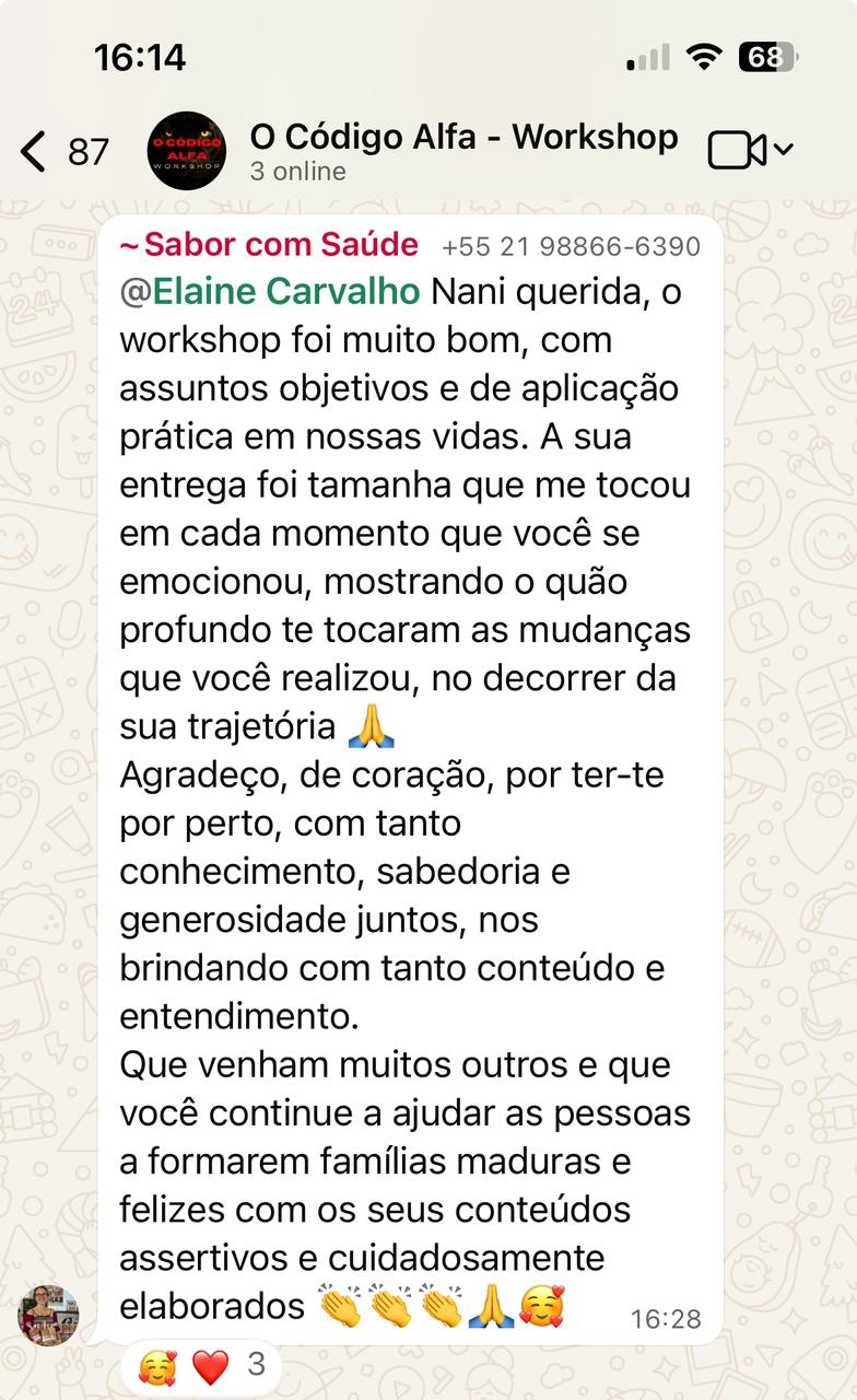 E também será disponibilizado no grupo do Workshop no Whatsapp, por isso é de extrema importância preencher o formulário para entrar no grupo após a compra.